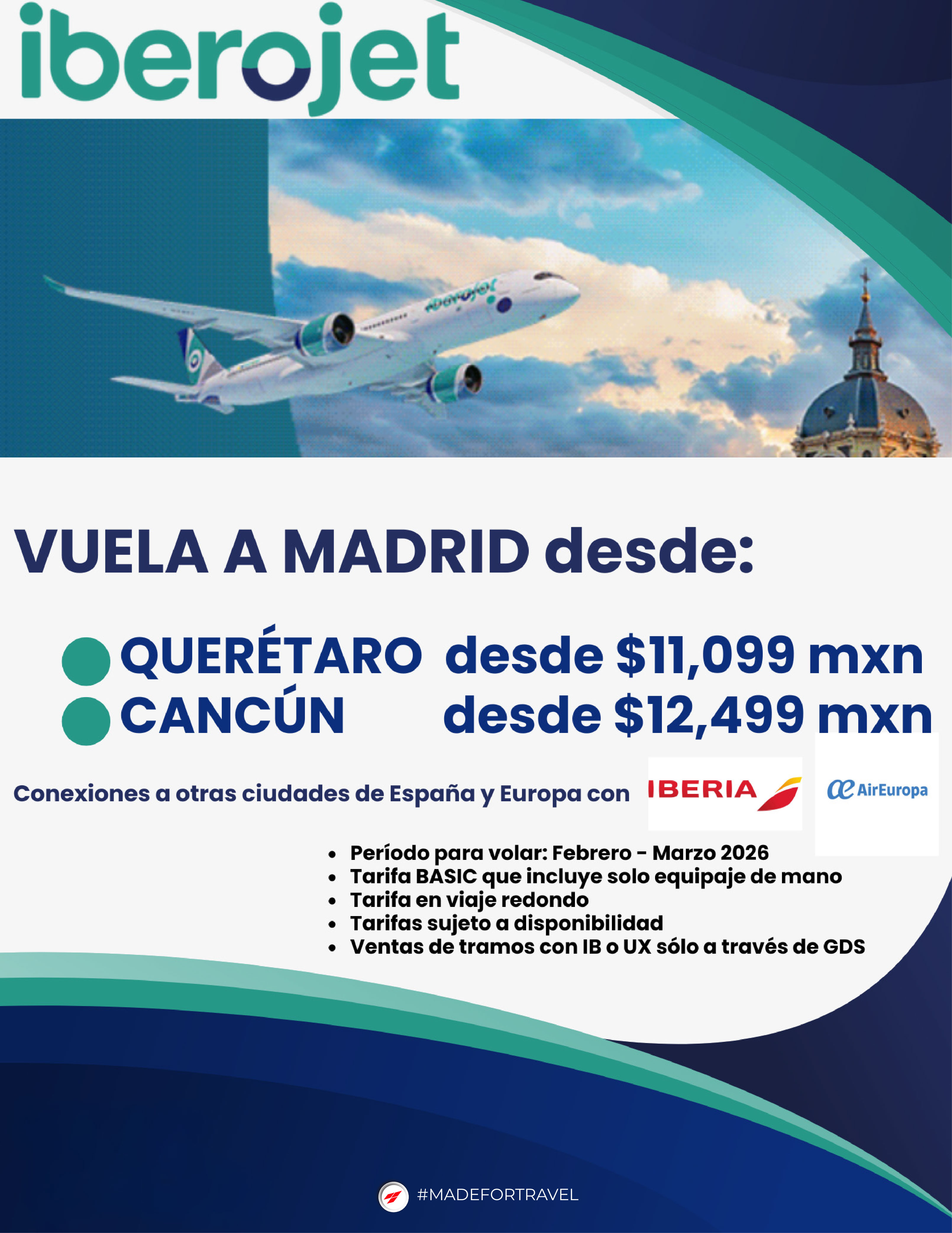 Nuevo vuelo directo Querétaro- Madrid con Iberojet
