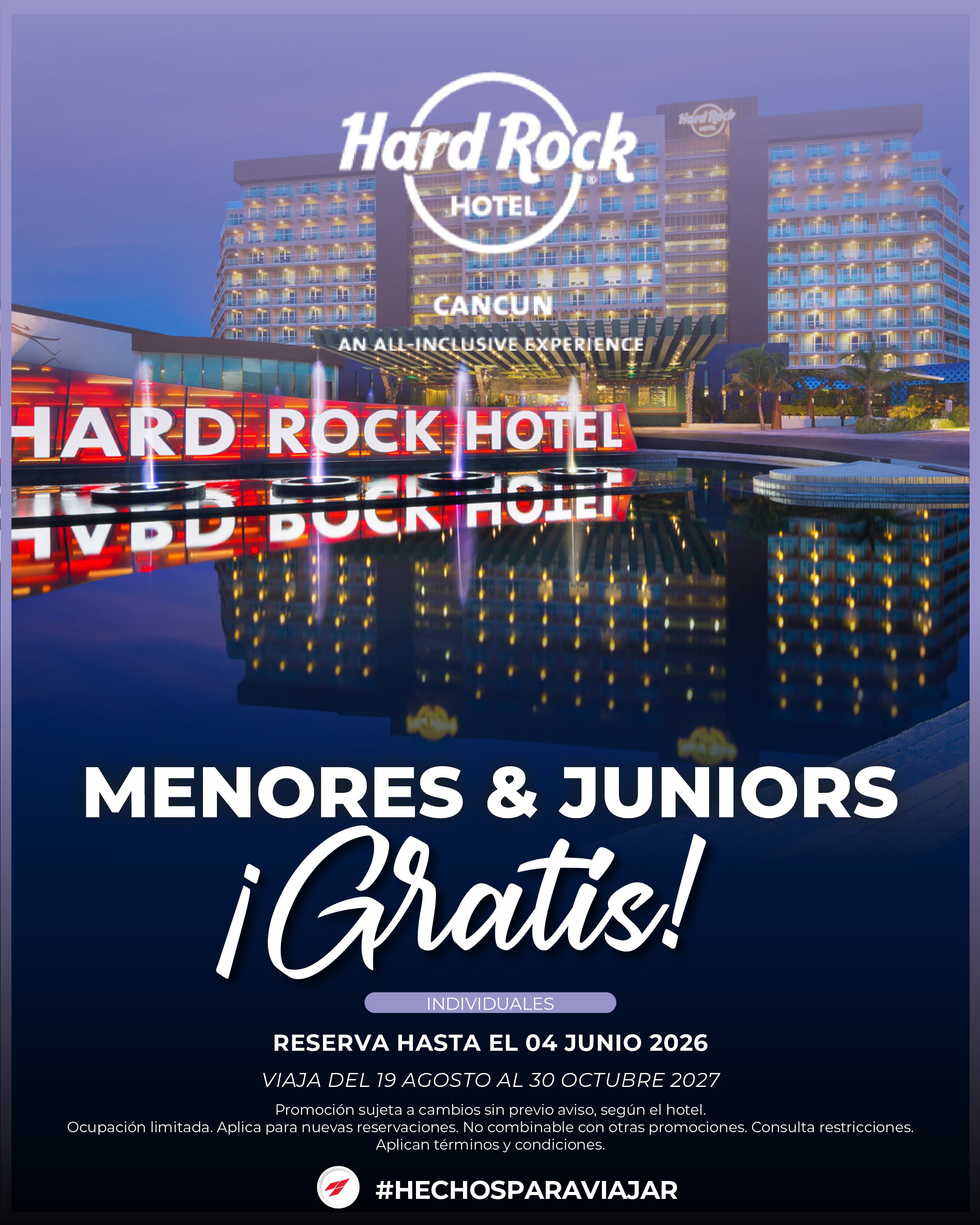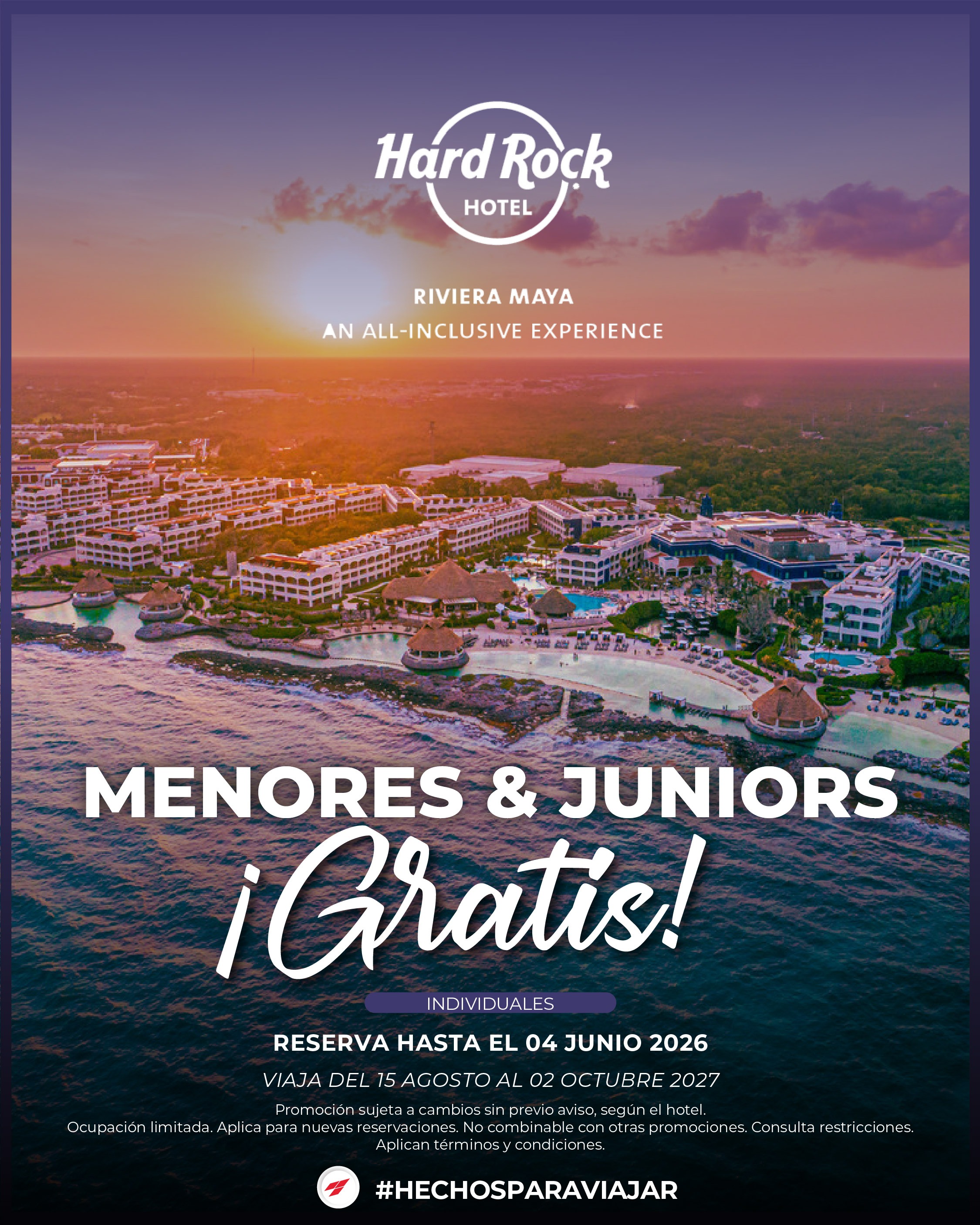 Hard Rock Hotel Vallarta / Punta Cana "Mnrs y Jnrs GRATIS"